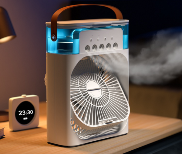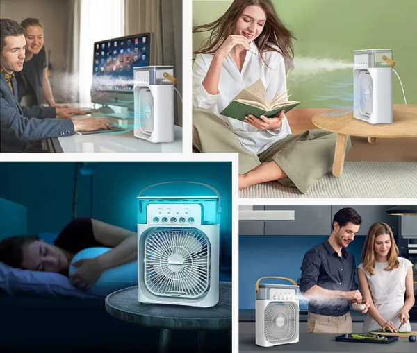 Delivers a rapid temperature drop in as little as 30 seconds, with multiple cooling and humidification options. Quiet operation and an integrated water tank make it ideal for personal spaces, day or night.